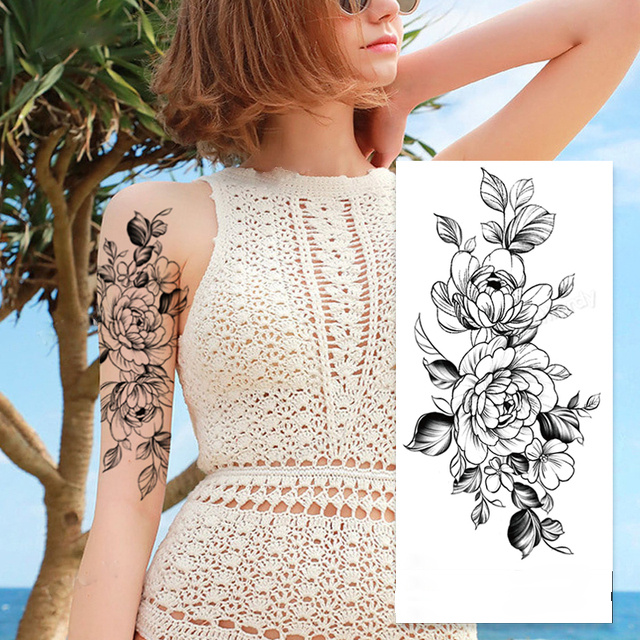 Временное тату водостойкое 3D большое Два цветка FF-092 18х9 см