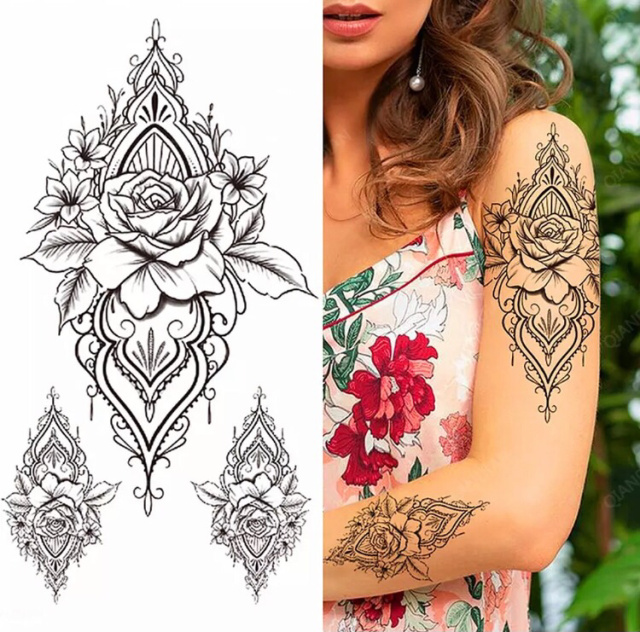 Временное тату водостойкое 3D большое Три розы XQB-331 20х9 см