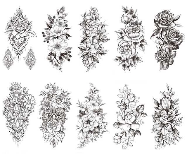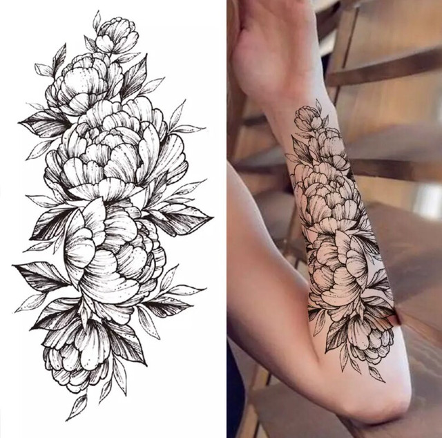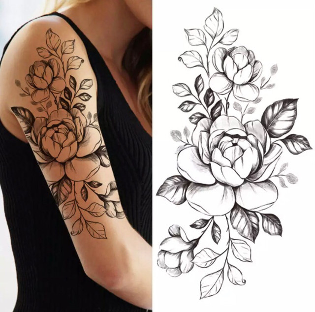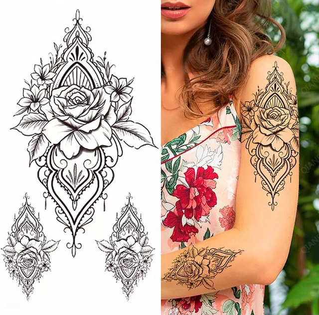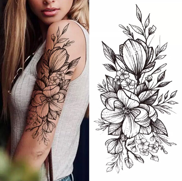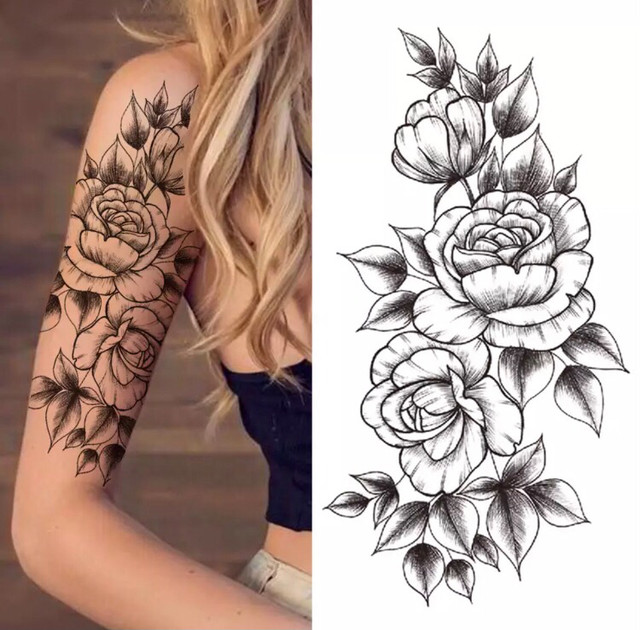Временное тату водостойкое 3D большое Три цветка XQB-339 19,5х9 см