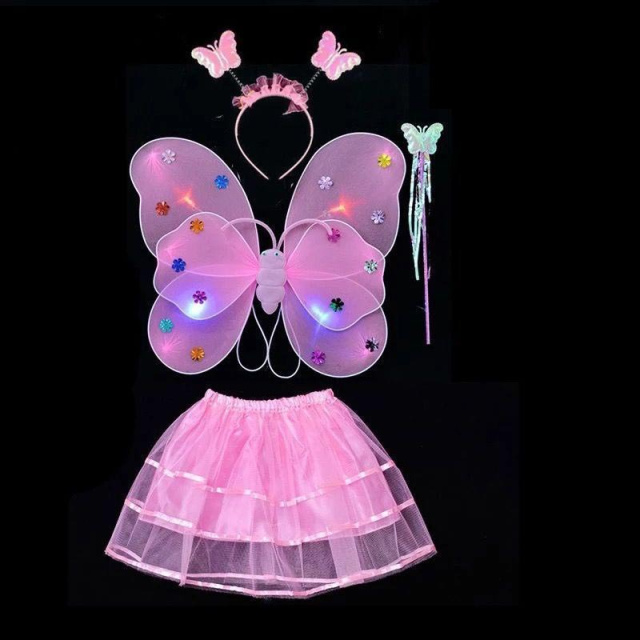 Карнавальный наряд крылья с юбкой светящийся Бабочка 9085 розовый