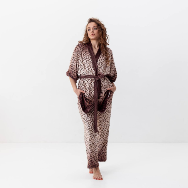 Комплект женский из плюшевого велюра штаны и халат Леопард 3446_XL 16070 XL