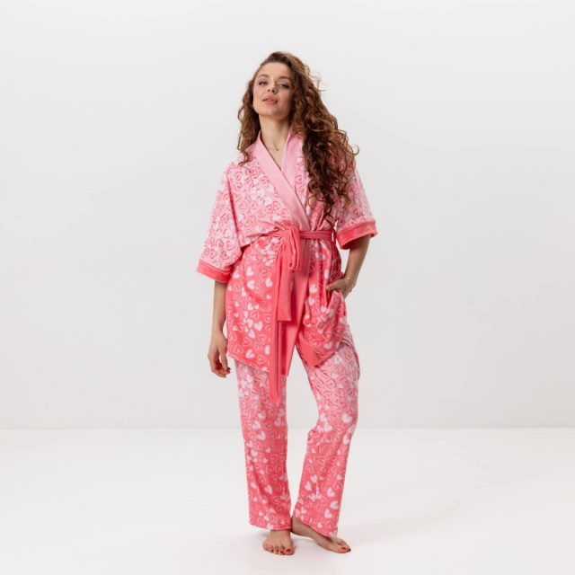 Комплект женский из плюшевого велюра штаны и халат Нежные сердечки 3426_S 15987 S