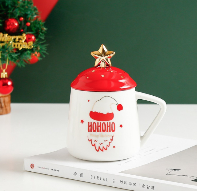Кружка с крышкой и ложкой Золотая звезда Шапка 5760 400 мл
