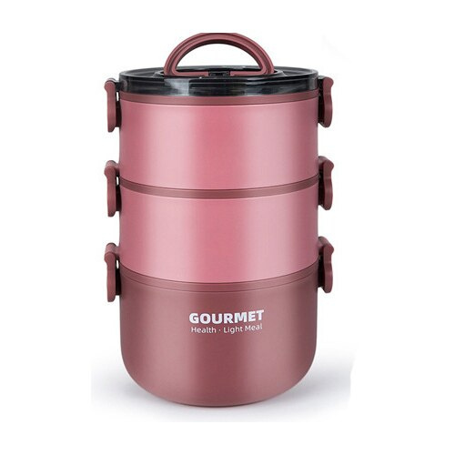 Ланч бокс трехъярусный пищевой – это практичная и удобная посуда, преимуществами которой являются безопасность и экологичность. Набор изготовлен из металла и пластика, что обеспечивает набору устойчивость при падениях и способность не тонуть в воде. Предназначен для удобного хранения и переноски продуктов питания. Компактный и простой в использовании.