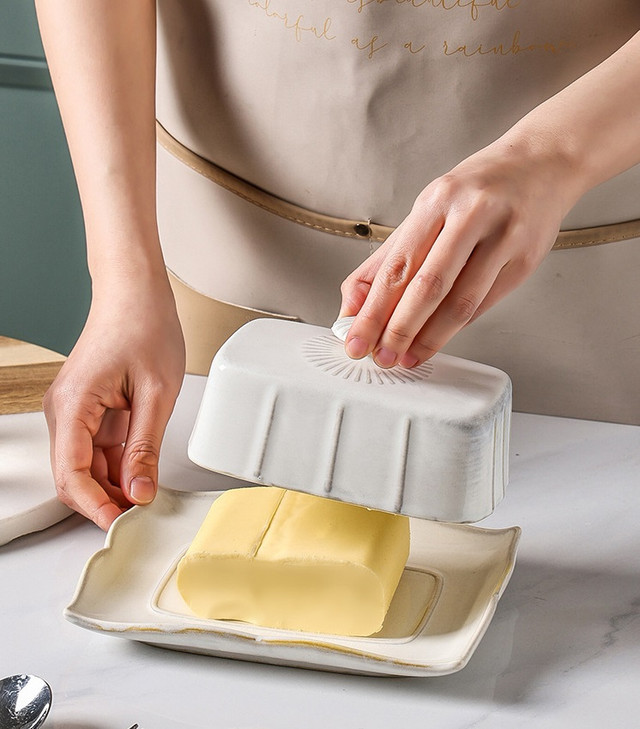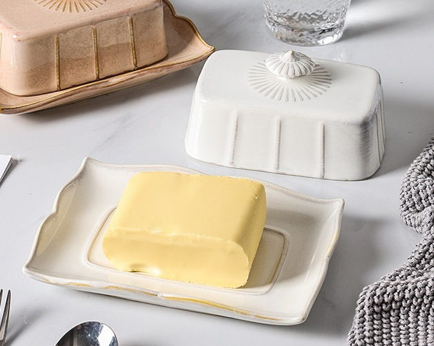 Масленка 11798 изготовлена из керамики. Маслёнка с крышкой поможет сохранить сливочное масло свежим и ароматным гораздо дольше, чем если бы оно хранилось в магазинной упаковке. Также, вы можете хранить в масленке твердый сыр.