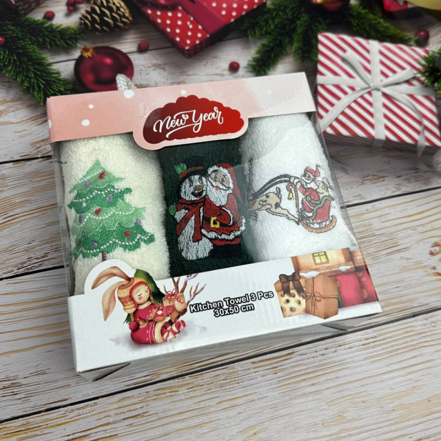 UA MarketОдессаBestoreТовары и услугиДомашний текстильТекстиль для кухниКухонные полотенцаНабор махровых кухонных полотенец Турция Новый год Санта Снеговик Елка 13823 30х50 см 3 шт