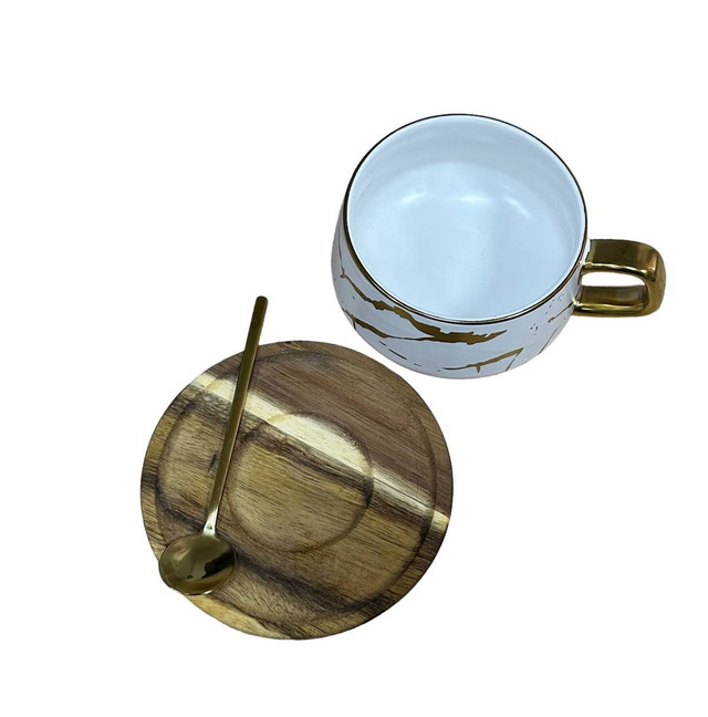 Чашка с ложкой и с блюдцем 11805 выполнена из керамики. Имеет удобную конструкцию и красивый дизайн. Отлично подойдет как для ежедневного применения и для праздничной сервировки стола.