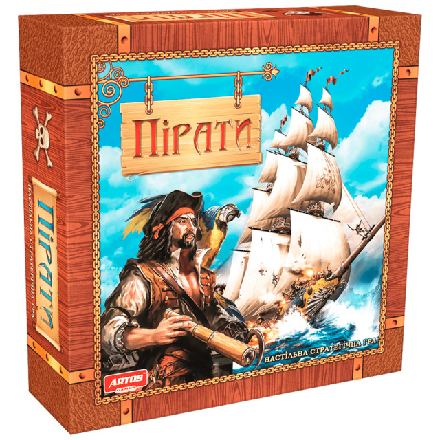 Artos Games Пираты 20826 – настольная стратегическая игра. События игры происходят на поле, разбитом на клетки. Фишки Пиратских кораблей перемещаются этими ячейками, по горизонтали и по вертикали. При этом Пиратские корабли заходят на острова Сокровищ, чтобы их ограбить; на острова Улучшений, чтобы улучшить характеристики своего корабля; в Пиратские бухты, чтобы отремонтировать свой корабль, а также проводят бои между собой и с Торговыми и Военными кораблями. В результате этих боев игроки набирают и теряют очки Славы. Также очки Славы достаются игрокам на островах Сокровищ. Цель игры – набрать 40 очков Славы. Победитель игры – участник, который первым наберет 40 очков Славы. Игра позволит проявить свои умственные способности, стратегическое и логическое мышление. Динамический ход событий удерживает участников в напряжении до конца игры. Каждый игрок должен рассчитывать свои действия на несколько ходов вперед. Все это позволит вам весело и с азартом провести время.