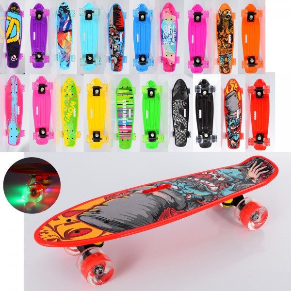 Пени борд Profi MS-0749-11. У скейта колеса выполнены из полиуретана. Отличное транспортное средство для активных и спортивных детей, любящих отдых на свежем воздухе и активные виды развлечения.