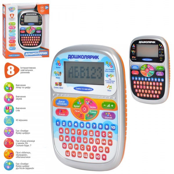 Детский планшет Limo Toy SK-0023-AB состоит из корпуса, процессора, клавиатуры, графического экрана. Обучающий планшет рекомендован для школьной программы детей от 3 до 6 лет.