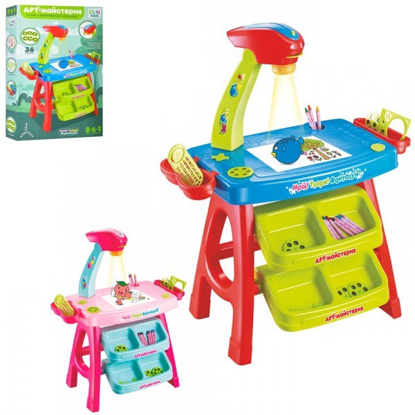 Детский проектор Limo Toy AK-0003-AB для рисования проектирует цветное изображение со специальных насадок на доску. Благодаря четким видимым контурам ребенок сможет их обводить и рисовать различные рисунки.