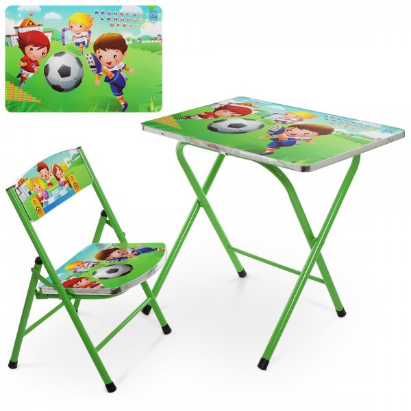 Столик детский складной ББ A19-football научит ребенка правильно сидеть. Изделия абсолютно безопасны для детей, поскольку изготовлены из стали и покрыты нетоксичными красками. На столике можно рисовать, учить уроки, собирать конструкторы, принимать пищу, а в случае появления загрязнений, они легко убираются влажной тканью. Набор позволит родителям приучить малыша к усидчивости, выработать правильную позу и научиться держать спину. Он идеально подойдет для дошкольного изучения алфавита, цифр и игр со своими друзьями.