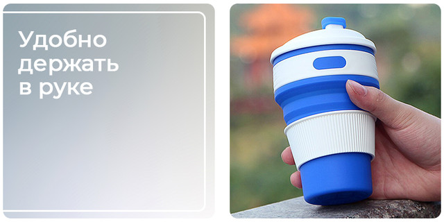 Такой стаканчик легко поместится в кармане, маленькой сумочке или рюкзаке.