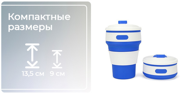Удобный стакан будет всегда рядом с вами, ведь он компактно складывается до минимальных размеров. В разложенном виде позволяет вместить в себя большую порцию чая, какао, кофе, лимонада или сока.