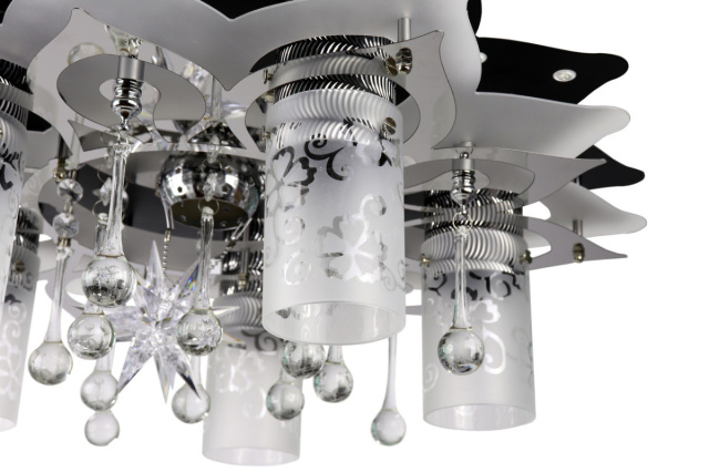 Люстра имеет простой дизайн и очень удобна в использовании, работает как от пульта, так и настенного выключателя.