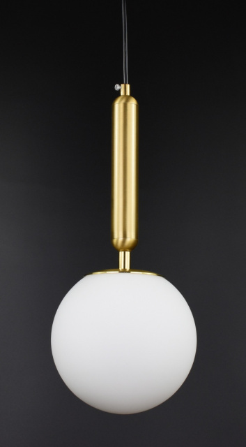 Люстра потолочная подвесная на 1 лампочку в цвета латунь. Корпус металл. Патрон Е27. Основа диаметром 10 см, плафон диаметром 15 см. Крепление к потолку на планку.