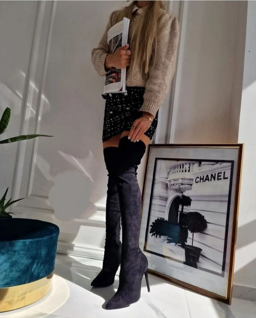 Ботфорты женские черные выполненные из искусственной замши. Модель представлена в демисезонном варианте внутри подкладка из флиса. Стильные и комфортные женские ботфорты Pruesley чудесно впишутся в гардероб.