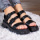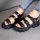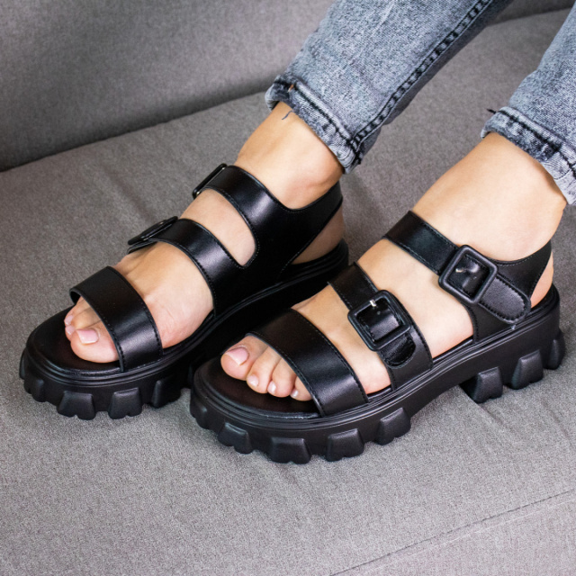 Сандалии из искусственной кожи черного цвета модное решение, которого требуют ваши образы. Модель без лишних элементов, дополнена застежкой ремешком. Сандалии женские позволят вам всегда чувствовать себя комфортно и выглядеть стильно.