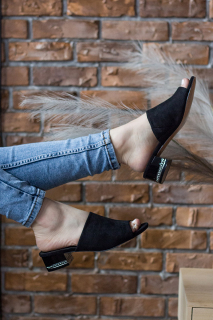 Мюли выполненные из эко - замши. Дизайн этой модели в черном цвете и с легкостью дополнит любой образ. Женские мюли лёгкие и мягкие – незаменимый атрибут летнего гардероба.