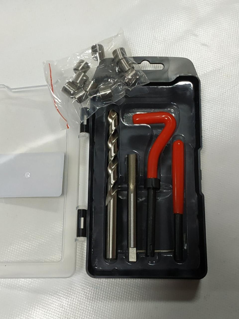 Резьба М6х1. 0 мм . В комплект входят: сверло; метчик; специнструмент для установки резьбовых вставок; комплект ремонтных резьбовых вставок соответствующего размера. Качественный инструмент для ремонта и восстановления резьбы.