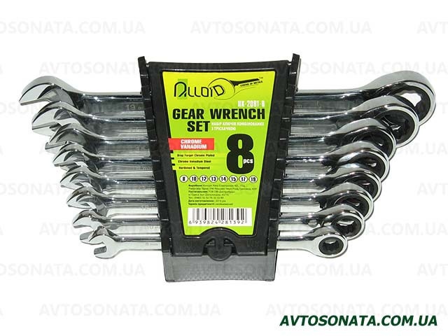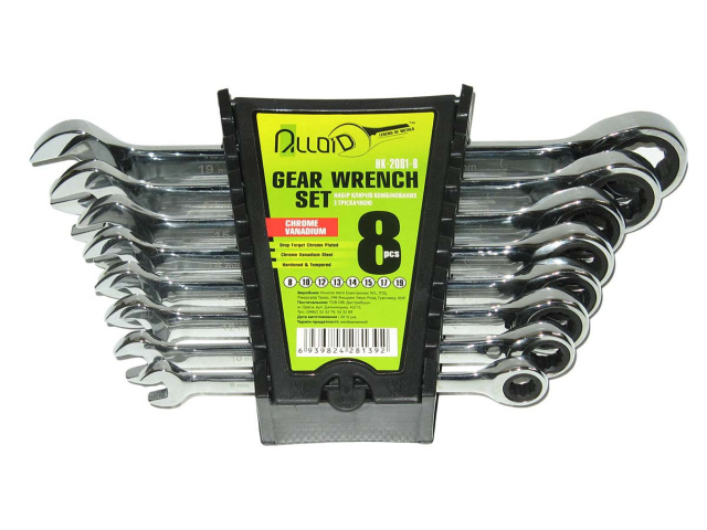 Набор ключей рожково-трещоточных 8шт 8-19 мм. ALLOID НК-2081-8