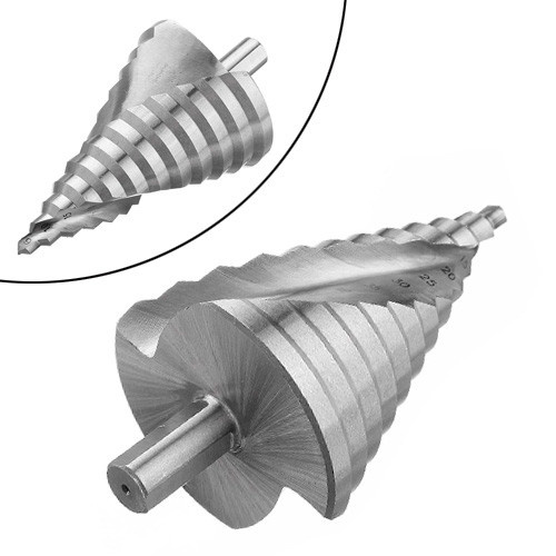 Ступенчатое сверло для создания отверстий разных диаметров в листовом материале (стали; цветных металлах; пластике и т.п.).