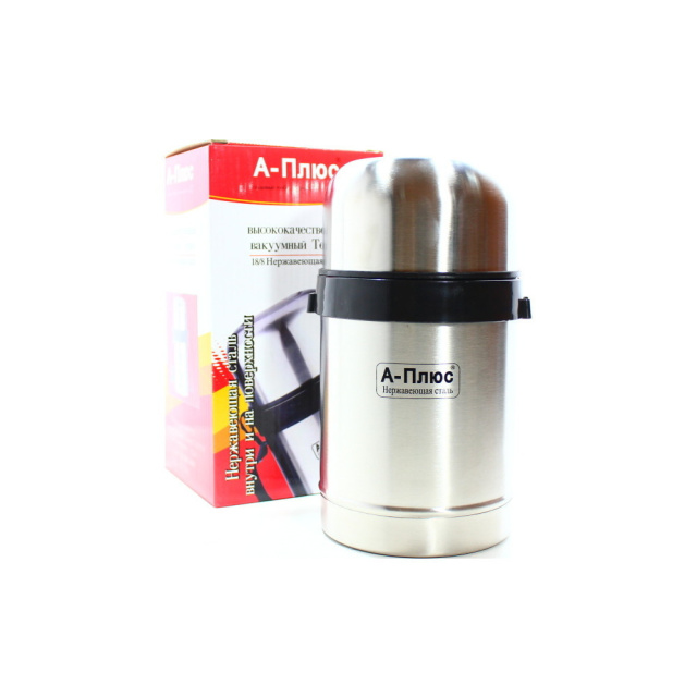 Корпус и колба термоса A-plus 1663 изготовлены из прочной высококачественной нержавеющей стали; которая не подвержена окислению и не влияет на вкус продуктов. Закрывается термос большой крышкой закруткой; которая сохранит продукты от проливания.