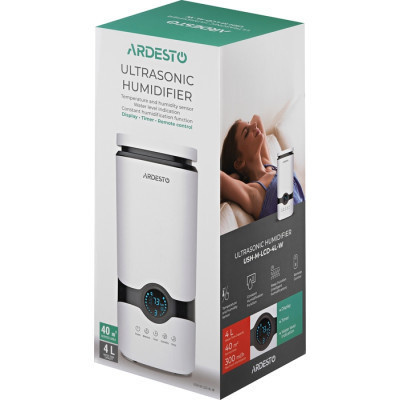 Ardesto USH-M-LCD-4L-W – ультразвуковой увлажнитель воздуха от компании Ardesto. Такое функциональное устройство необходимо в домах; где является потребностью контроль за показателями воздуха. Увлажнитель управляется механическим путем посредством поворотного переключателя. Вода поступает в резервуар благодаря верхнему заливу.