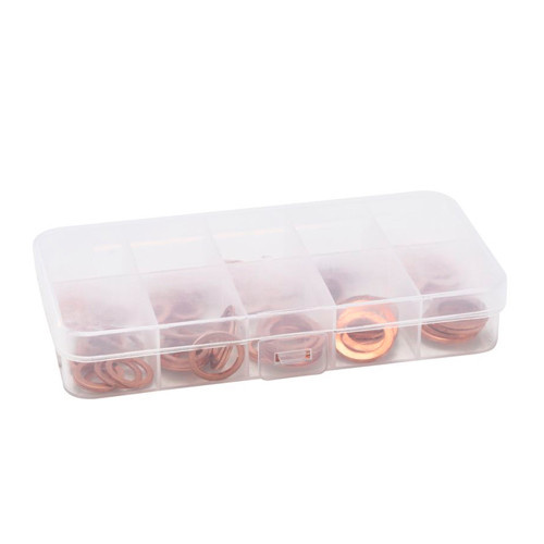 Преимущество данных колец – способность сохранять уплотнительные функции при воздействии высокой температуры и при резком перепаде температурного режима эксплуатации механизма. Поставляется набор в пластиковом кейсе для удобного хранения и транспортировки и состоит из 100 колец; разделённых на 9 видов:
