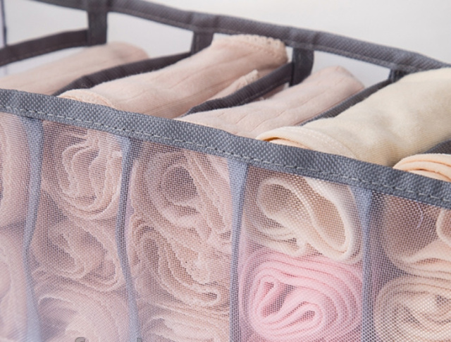 Компактный и удобный в использовании органайзер для белья значительно упростит хранение.Имеет 7секций. Его можно разместить в шкафу; гардеробной или в комоде. В нем можно хранить вещи любых категорий. Благодаря органайзеруваше белье всегда будет сложено аккуратно и сразу можно будет найти нужную вам вещь.