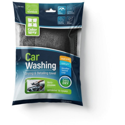 Микрофибровое полотенце ColorWay Extra Dry 1200gsm - двустороннее микрофибровое полотенце для деликатной работы с лакокрасочным покрытием автомобиля: сушки; удаление пыли; устранение остатков воска; вытирание стекла. Позволяет мягко; абсолютно безопасно; без давления на кузов высушить поверхность в 2-3 раза быстрее обычной замшевой тряпки. Окантовка микрофибры сшита из мягкой ткани и не оставляет повреждений при контакте с поверхностью. Благодаря мягкому тонкому ворсу и специальному плетению «крученая петля» имеет экстра абсорбирующие свойства - впитывает до 600% воды от собственного веса без остатков разводов и ворса; что позволяет использовать полотенце также для протирания стеклянных и деликатных поверхностей таких как (окна; душевые кабины; зеркала; хромированные изделия и прочее)