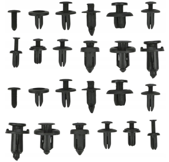 Набір універсальних автомобільних кліпсів 9324 для фіксації елементів кузова й обшивки. До набору входять 16 популярних і широко використовуваних різновидів кліпс. А також інструменти для зняття автомобільного оброблення.