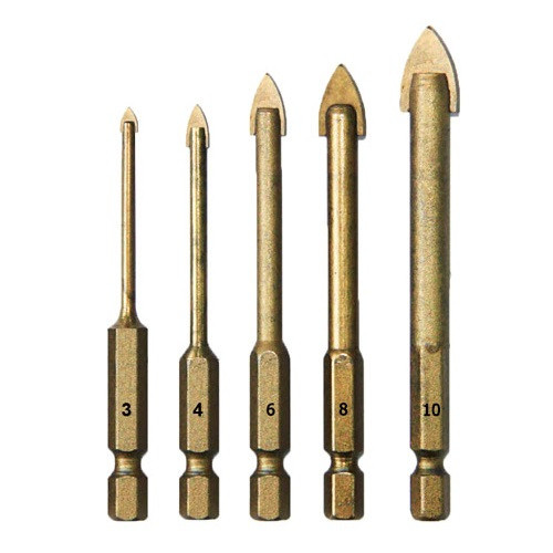 Набор из 5 копьевидных сверл разных диаметров для шуруповерта. Предназначены для работы с хрупкими материалами: стеклом; керамической плиткой и т.п.