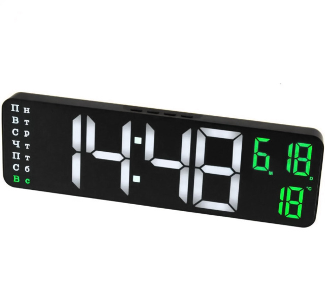 Має світлодіодний дисплей високої якості. Який поінформує вас про час; дату; температуру; та день тижня. Світло світлодіодів не ріже очі; але в той же час добре відображається на екрані годинника при будь-якому освітленні; а також при повному його відсутності. Такий будильник не завадить вам заснути з надто яскравим світлом дисплея; навіть якщо він знаходиться біля вашого ліжка. Цифри на екрані чіткі; високі; добре видно і в сонячний день; і в темну пору при вимкненому світлі.