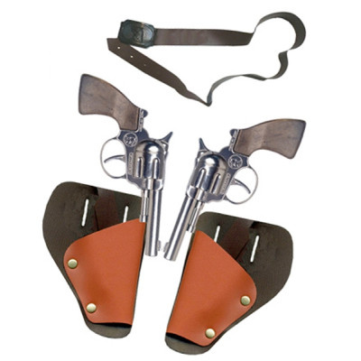 В наборе 2 цельнометаллических звуковых револьвера; 2 кобуры с поясом.
