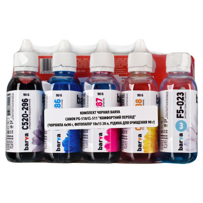 Комплект чернил "Комфортный переход" для Canon PG-510/CL-511 специальные 4х90 г + фотобумага 10х15 20 л + жидкость 90 г Barva (CPGI520-CMP)