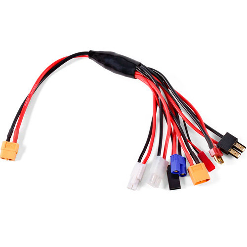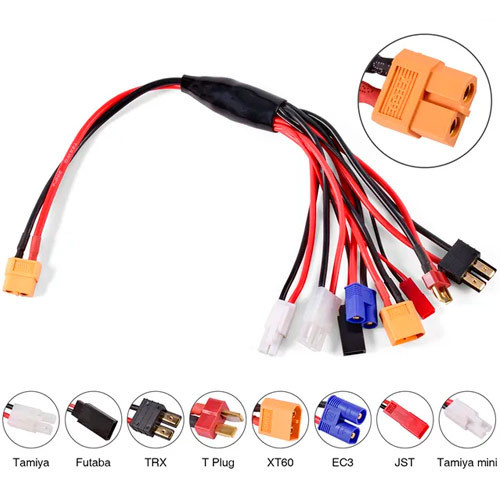 Переходник 8в1 XT60 для зарядных устройств и аккумуляторов– это универсальный аксессуар; который позволит подключать различные типы аккумуляторов к зарядным устройствам. Кабель оснащен входным разъемом XT60; стандартным для многих FPV-систем и различных дронов. А также восемью наиболее распространенными выходными разъемами для различных типов аккумуляторов и зарядных устройств.