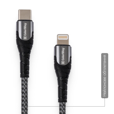 Дата кабель USB-C to Lightning 1.0m ColorWay (CW-CBPDCL033-GR)