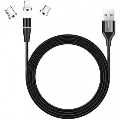 Дата кабель USB 2.0 AM to Lightning + Micro 5P + USB-C 1.0m Magnetic ColorWay (CW-CBUU038-BK)