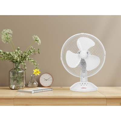 Настольный вентилятор ARDESTO FT-23A белого цвета на круглой опоре подойдёт к любому интерьеру. Мощность вентилятора составляет 30 Вт; а уровень шума – 60 дБ. Управление механическое – с помощью двух клавиш переключения скорости.