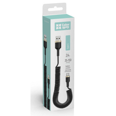 Дата кабель USB 2.0 AM to USB-C 1.0m spiral black ColorWay (CW-CBUC051-BK)