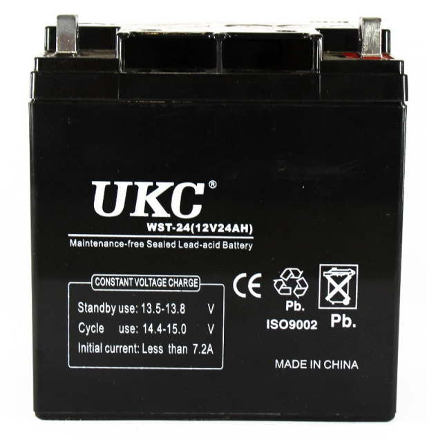 Акумулятор UKC WST-24 12V 24Ah виготовлений з передової технології AGM. Свинцево-кислотна серія батарей дозволяє безперервно використовувати; без потреби в технічному обслуговуванні; на протязі 8-ми років.