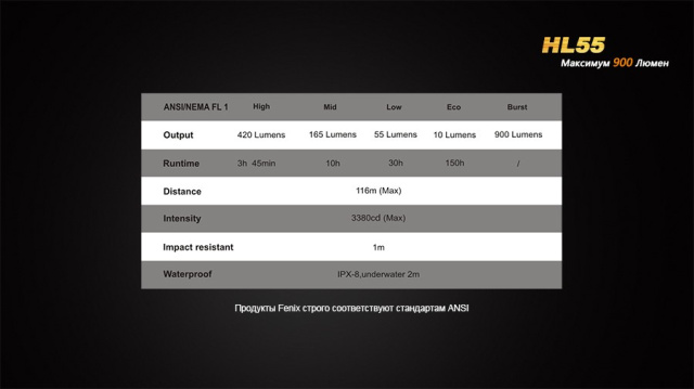 Налобний ліхтар компанії Fenix призначений туристам і любителям їзди на велосипеді. У моделі HL55 XM-L2 (U2) виробник зробив акцент на зручність використання освітлювального приладу. Вага нового пристрою — всього 115 р., а довжина корпусу — 84 мм. У ліхтаря 4 режими яскравості і додатковий турборежим. Для перемикання між ними призначена одна єдина кнопка, розташована збоку корпуса. Причому в режим турбо можна перейти з будь-якого стандартного, для чого потрібно натиснути кнопку на кілька секунд. З турбомощностью ліхтар буде світити 30 секунд, а після автоматично перейде до стандартної роботі.