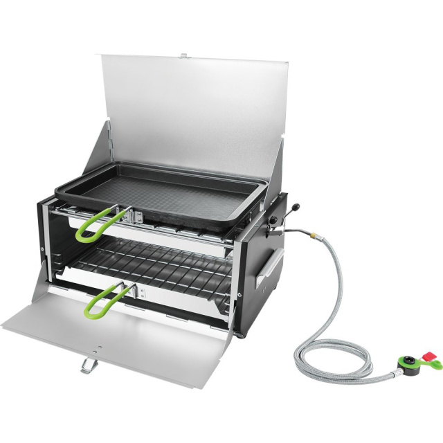 Однією з переваг гриля є продумана технологія нагріву, яка запобігає вбиранню у їжу токсичних речовин, що виділяються у процесі горіння. Завдяки дифузійному нагрівачу, який знаходиться у центрі конструкції, продукти харчування не контактують із димом, а шкідливі речовини піднімаються вгору і не осідають на їжі. Дане рішення дозволяє готувати не лише смачні, а й корисні страви, наприклад, шашлик, м'ясо та овочі гриль, запечену рибу та багато іншого, на що вистачить фантазії користувача.
