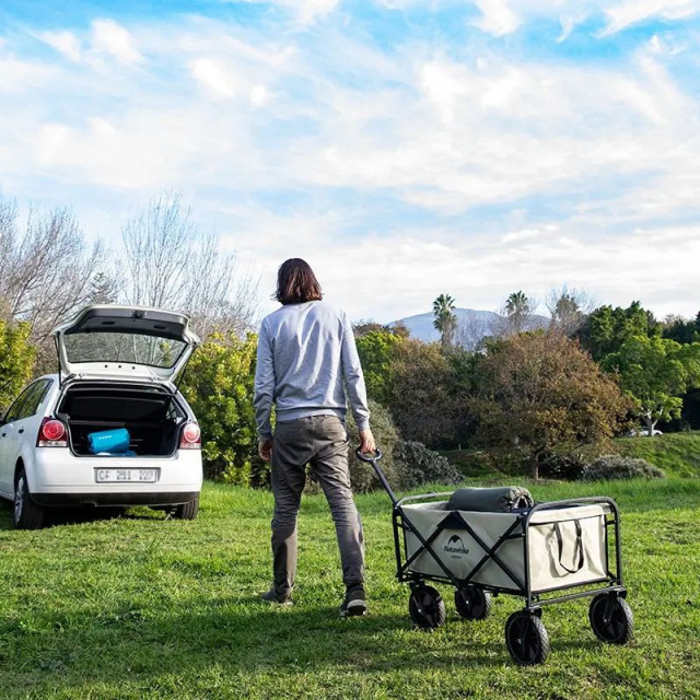 Складаний візочок Naturehike робить транспортування туристичного екіпірування та харчових продуктів легким та комфортним. З його допомогою також можна облаштувати місце для відпочинку, перетворивши модель на невеликий столик за допомогою стільниці (купується окремо).