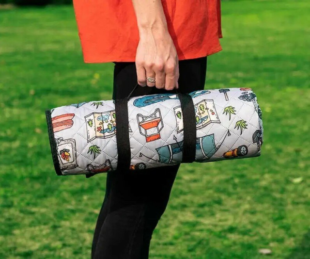 Килимок виготовлений з поліестеру, нижній шар килимка укріплений, що захищає його від пошкоджень. Килимок можна прати в пральній машині. Килимок в яскравому принті стильний і зручний для відпочинку в парку або на пляжі.