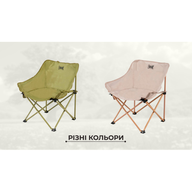 Стілець KY504G розкладається до розмірів 46 х 46 х 68 см, дозволяючи повністю розслабитися на природі та насолоджуватися відпочинком на дачі, під час кемпінгу або риболовлі. На ніжках є нековзні насадки для стійкості конструкції у разі встановлення на хисткому ґрунті.