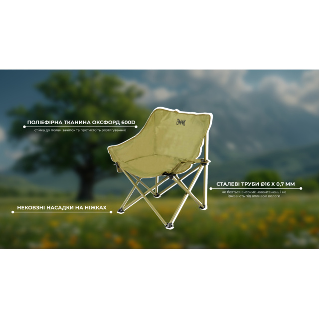Завдяки складаній конструкції стільця ви можете забути про його довге складання та встановлення — модель розкладається лише в кілька рухів, заощаджуючи час для приємного проведення часу на свіжому повітрі. До того ж виріб має мінімальну вагу та розміри 68 х 14 х 14 см у складеному вигляді, тому його легко переносити з місця на місце та перевозити у багажнику автомобіля.