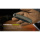 Сталь 14C28N виступає матеріалом клинка. Це нержавіюча марка, розроблена шведською компанією Sandvik Stainless спеціально для виробництва ножів. Сплав твердістю на рівні 58-60 HRC наділяє різальну кромку стійкістю до пошкоджень. Галтування клинка (stonewash) робить поверхню сталі неоднорідною, матовою, а чорне покриття є яскравою прикрасою дизайну.
