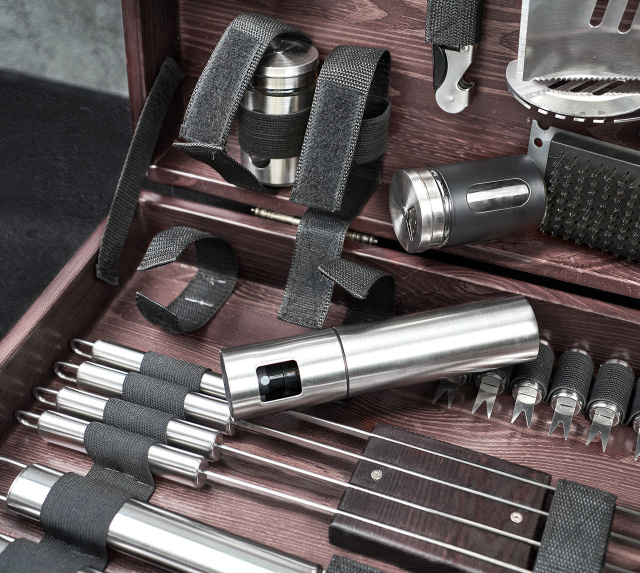 У ньому ви знайдете все необхідне для приготування смачних страв на вогні, включаючи шампури, інструменти та аксесуари, які роблять процес приготування простим та приємним.